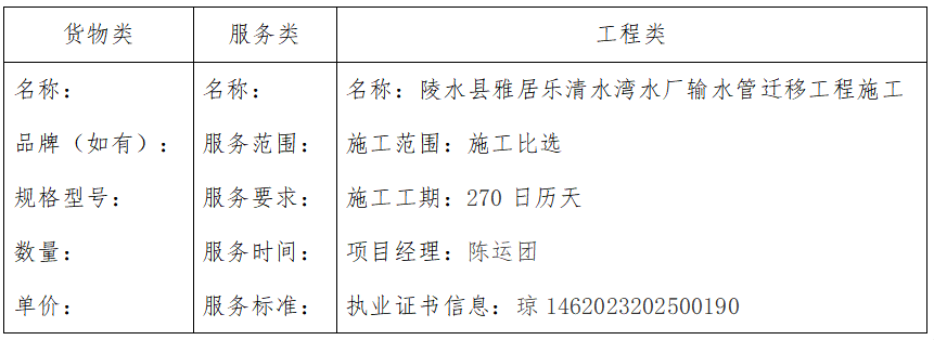 二、项目名称:陵水县雅居乐清水湾水厂输水管迁移工程施工
