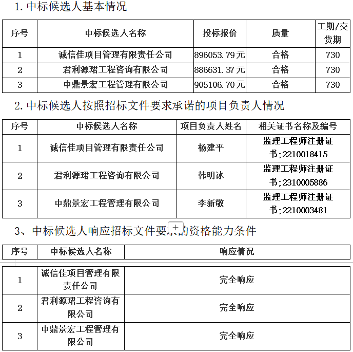 (一)第一中标候选人:诚信佳项目管理有限责任公司